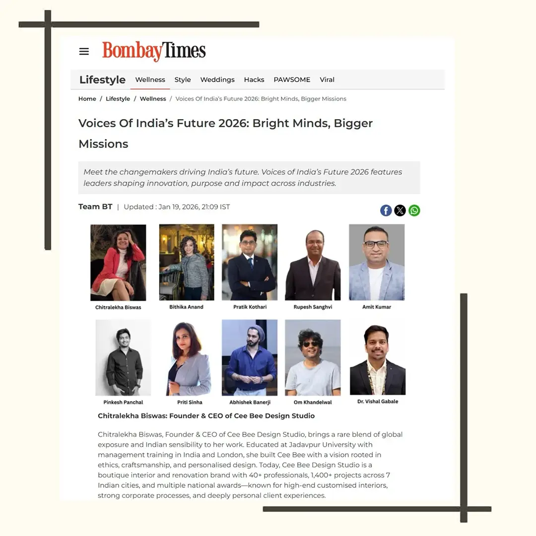 Being featured in Bombay Times is a truly special milestone for Cee Bee Design Studio. This recognition reflects our passion for creating spaces that balance modern elegance with timeless character. Every project we design carries a story—crafted with attention to detail, functionality, and aesthetic harmony.