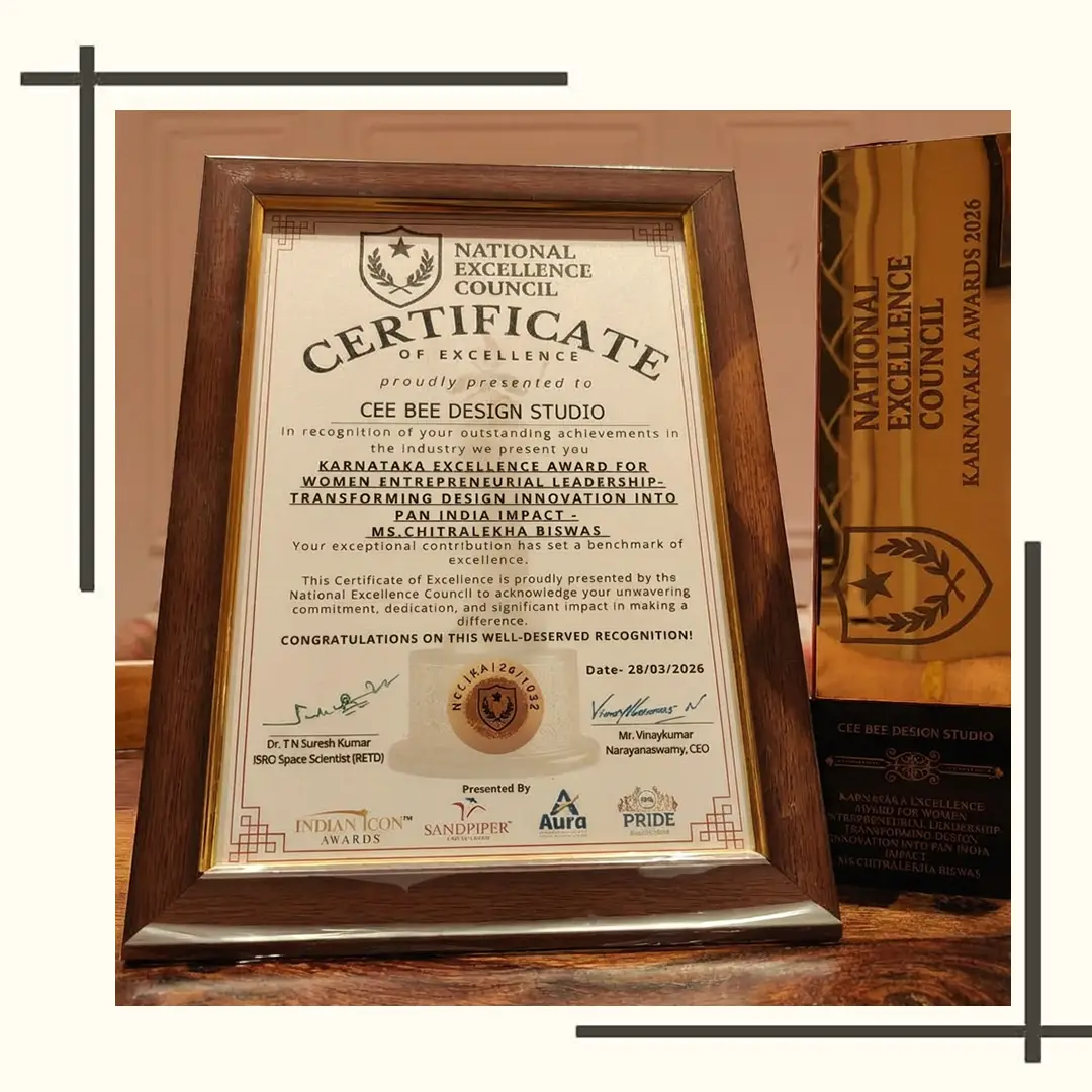 This honour and award recognise CeeBeeDesignStudio and Chitralekha Biswas for being the Most Creative & Trendsetter Interior Design Firm of the Year 2022 for Karnataka & West Bengal. It has been awarded at The Taj West End, Bengaluru.
