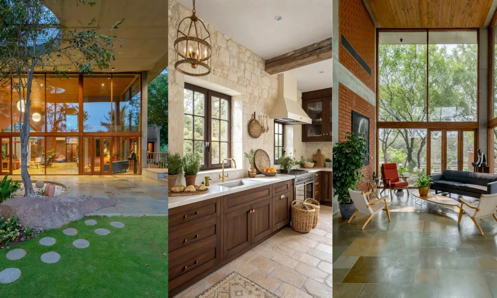 Courtyards, cut-outs for trees, and seamless indoor-outdoor transitions ensure natural light, ventilation, and greenery become part of everyday living. The result is a home that doesn’t just look earthy—it feels grounded, calm, and timeless.