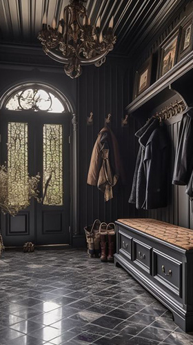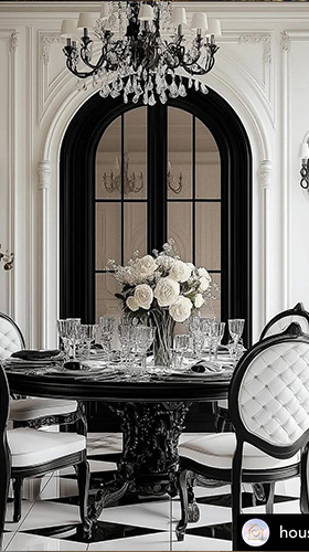 The modern Gothic interior offers not only a sense of mystery and drama but also a connection to history and craftsmanship, while evoking a feeling of luxury and distinction.