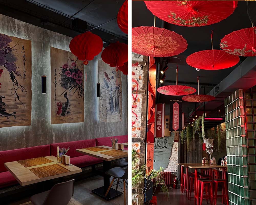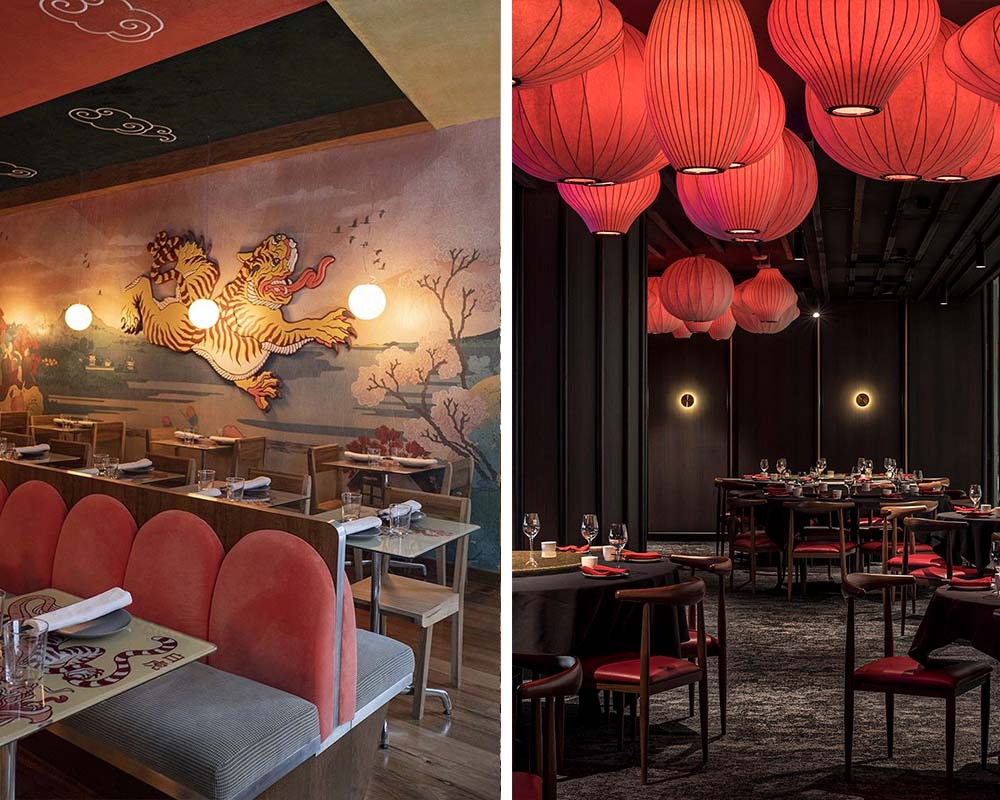 Chinese interiors are often defined by red and gold palettes paired with lantern-style lighting, symbolizing prosperity and warmth. In restaurant design, these elements are enhanced by Feng Shui principles, which ensure balance, harmony, and a welcoming dining experience.