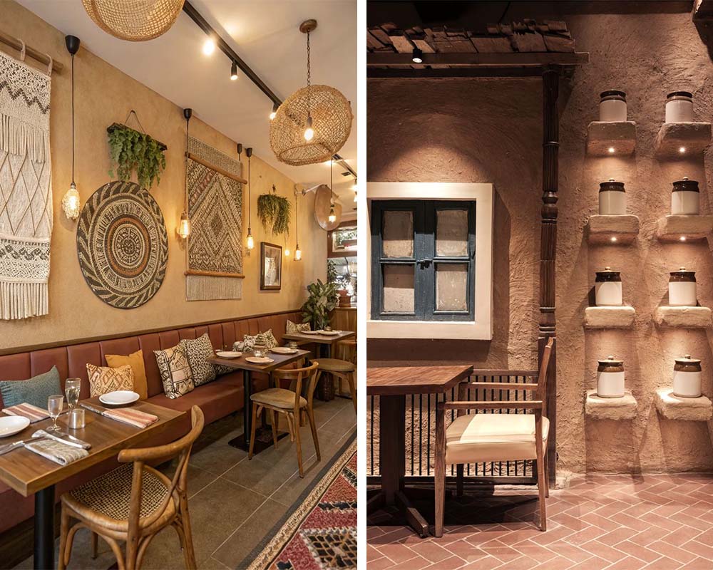 Fusion and themed interiors experiment with Bollywood-inspired wall art, rustic dhaba-style seating, and eclectic global design influences. This style is particularly appealing to younger diners who seek unique, vibrant, and memorable dining experiences.