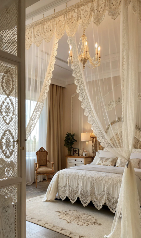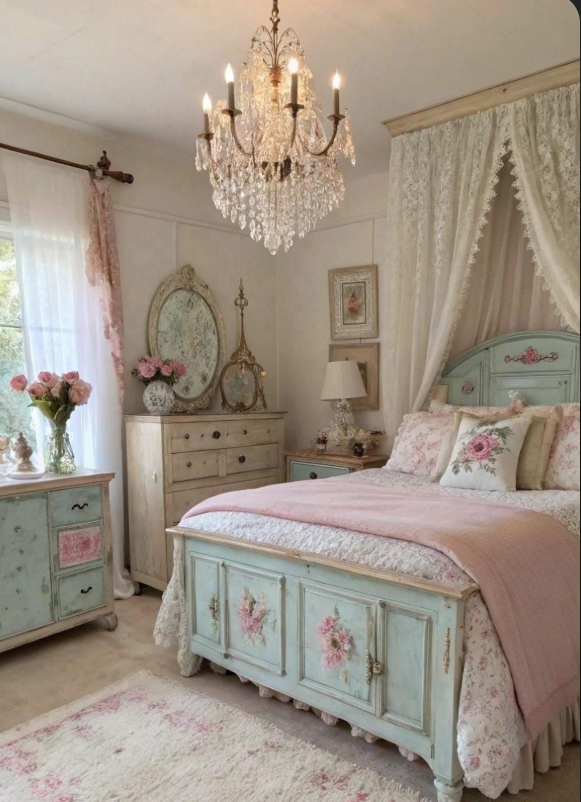 • Bedrooms: Incorporating distressed dressers and lace curtains to evoke a serene, old-world charm — perfect for rest and reflection.