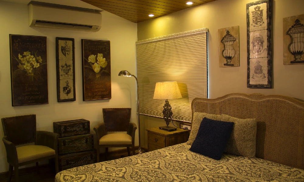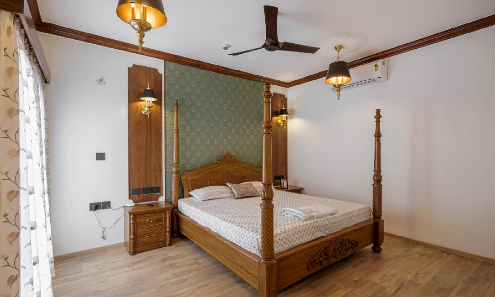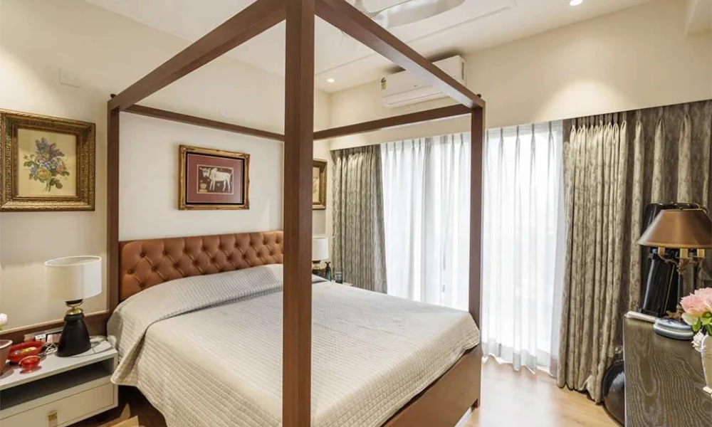 In a 3 BHK apartment, the family desired to add an old-world wooden bed with carved details and family significance, as the bed has been passed down through generations. They asked us to design the bedroom interior around this knowledge base to value its heritage, but also to feel new and functional for contemporary living.
