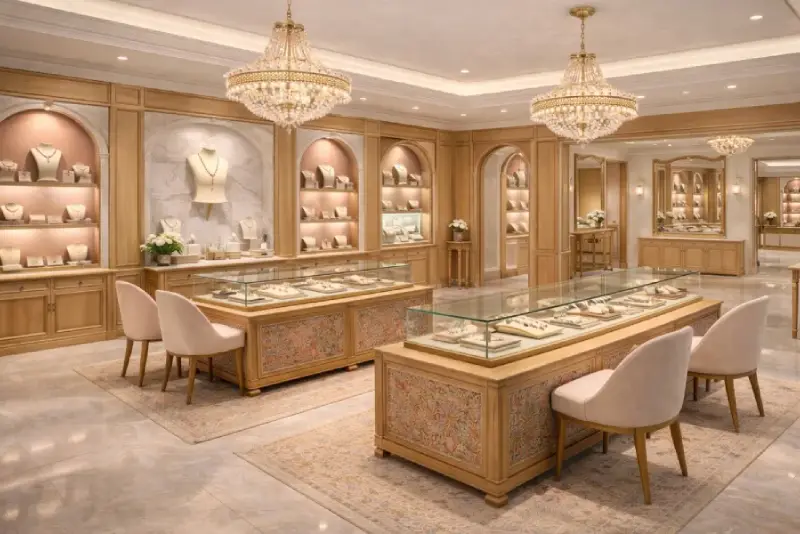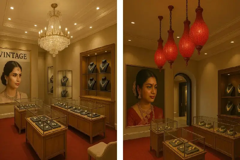 Jewellery shop interiors should feel rich, inviting, and full of quiet confidence, where every piece is allowed to shine. It must be thoughtfully lit, softly textured, and invitingly laid out so the customer enjoys the experience comfortably and joyfully.